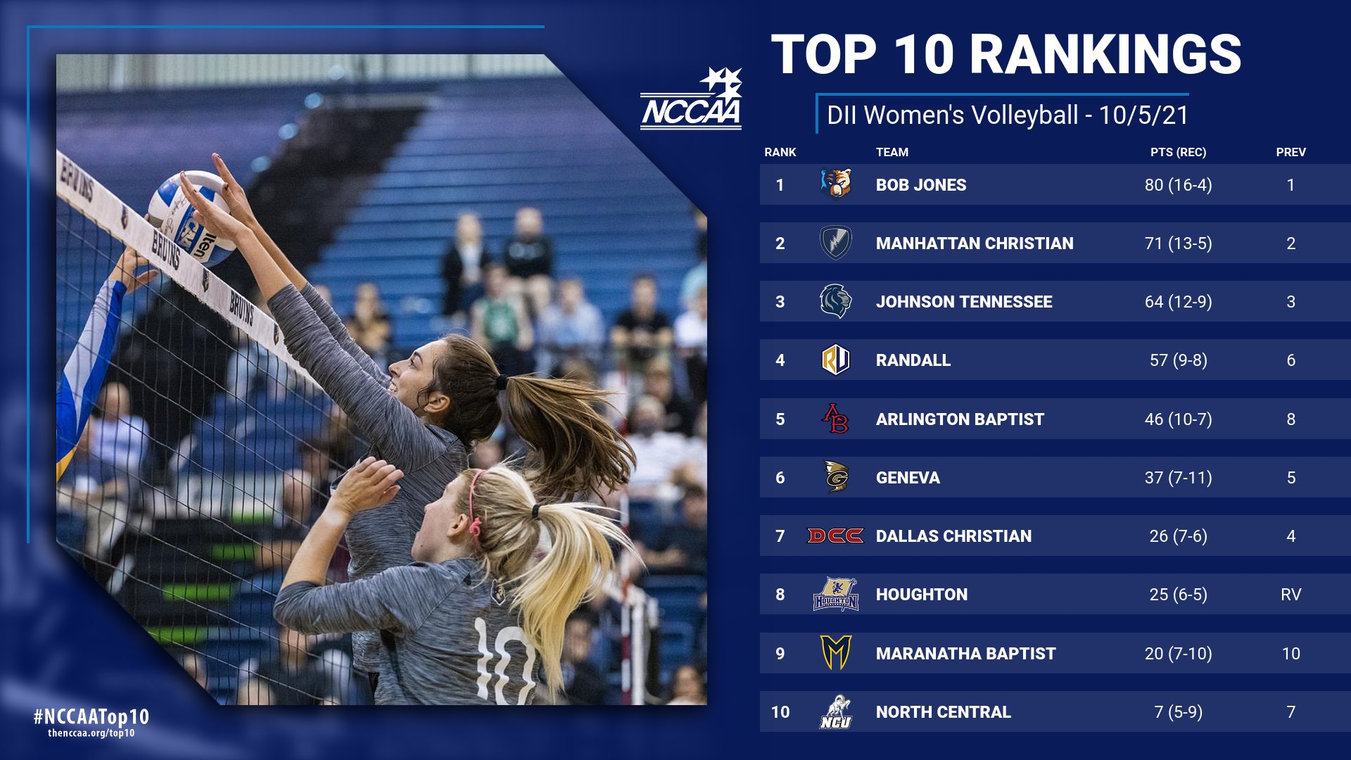 Also receiving votes: Ozark Christian (4), Alice Lloyd (2), Pensacola Christian (2)