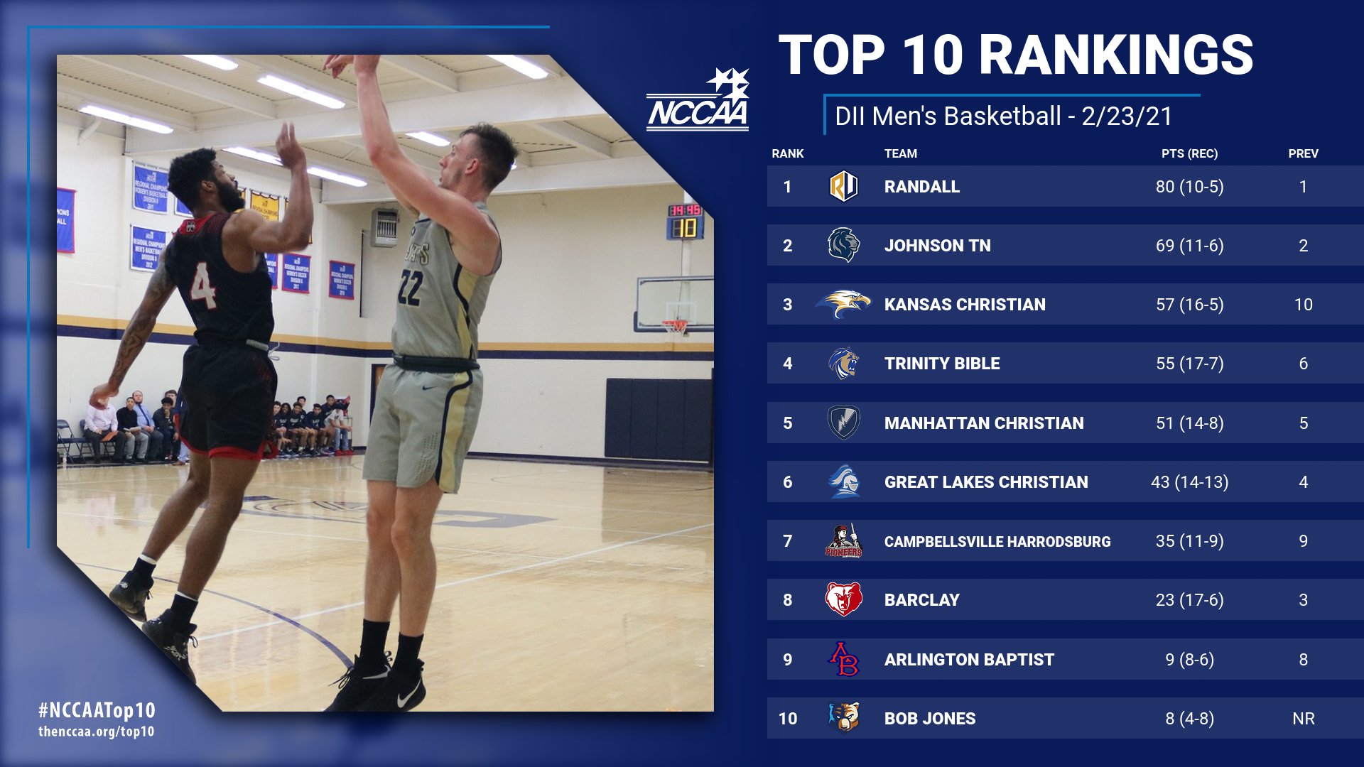 Also receiving votes: Maranatha Baptist (7), Trinity Baptist (3)