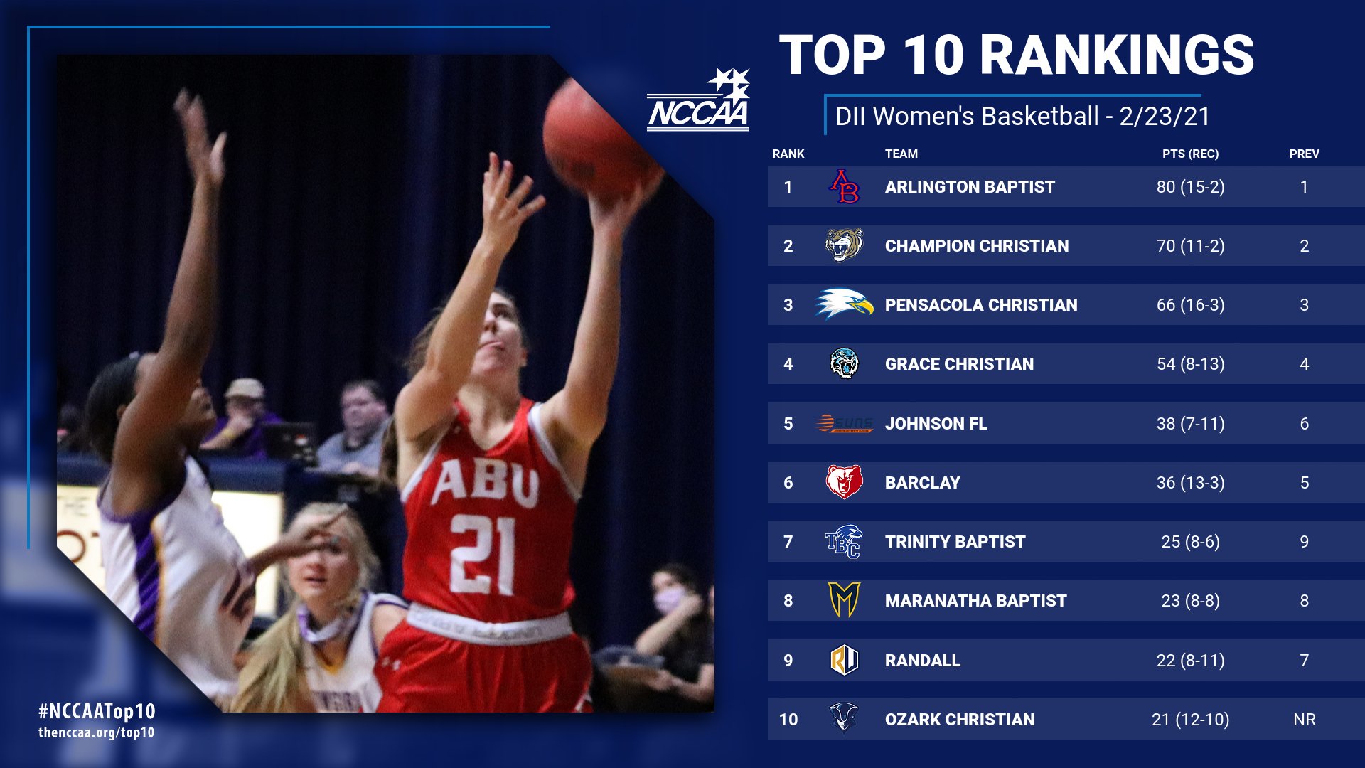 February 23, 2021 Also receiving votes: Campbellsville Harrodsburg (4), Bob Jones (2), Johnson Tennessee (1)