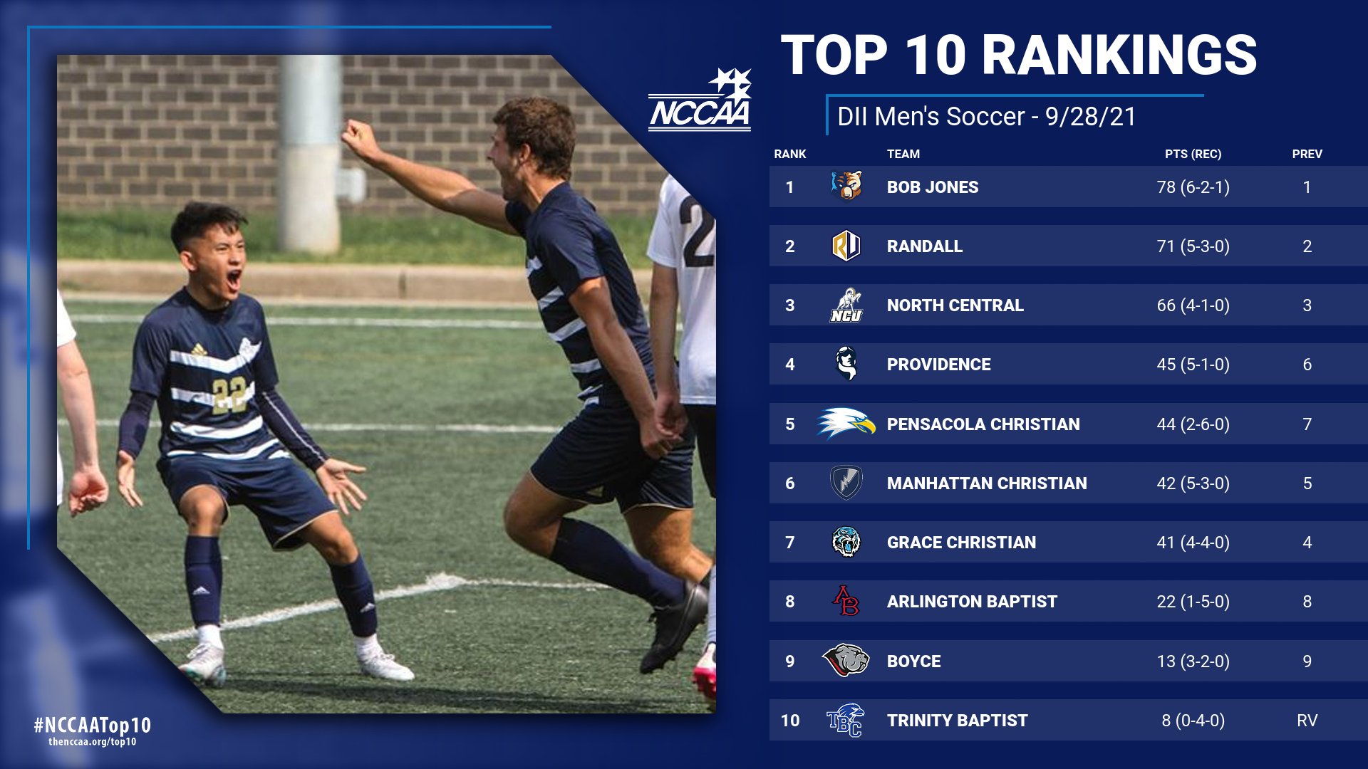 September 28, 2021 Also receiving votes: Moody Bible (5), Faith Baptist Bible (4), Johnson Tennessee (1), Kansas Christian (1), Toccoa Falls (1)