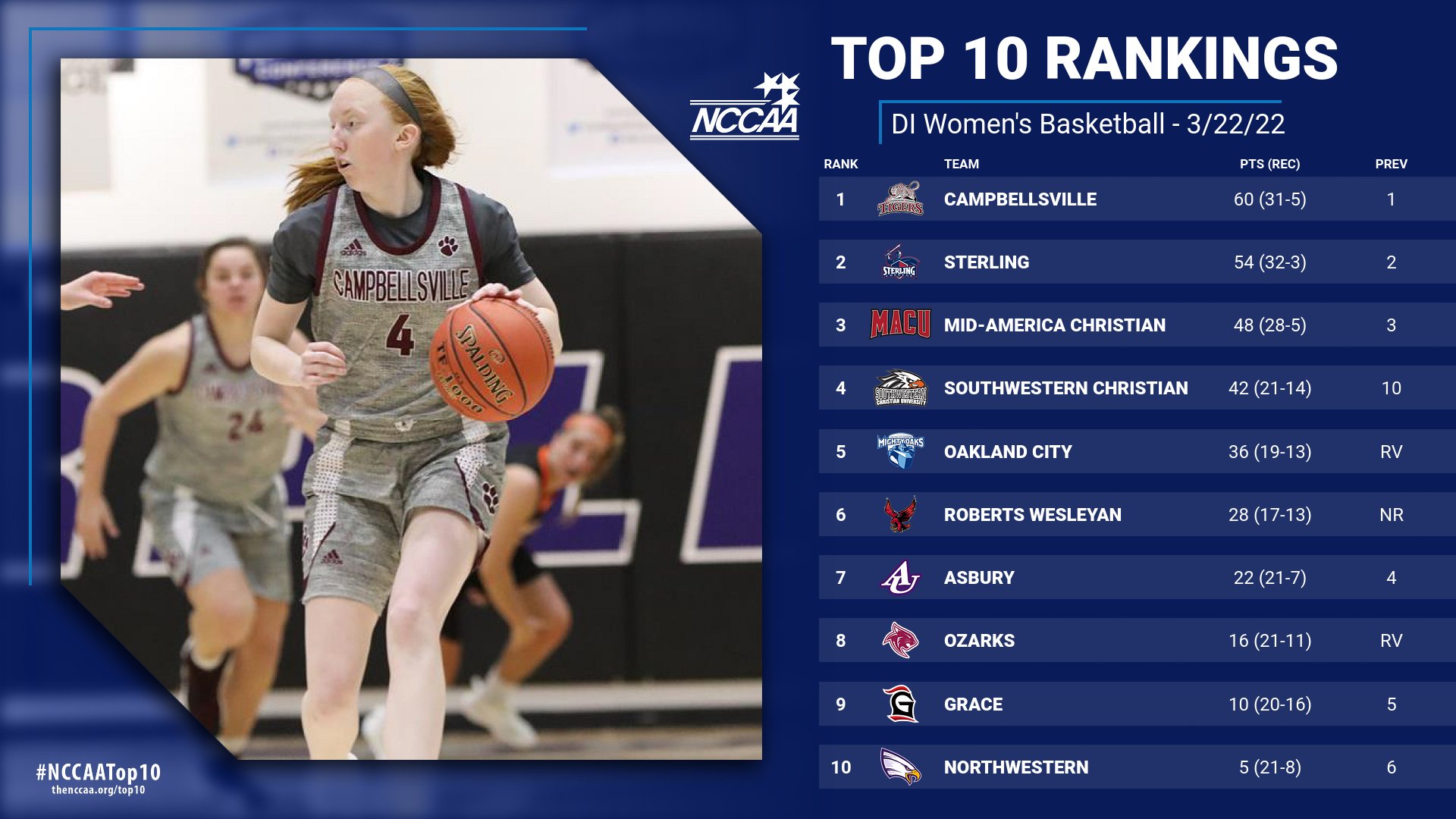 Also receiving votes: Alice Lloyd (3), Cedarville (3), Columbia International (3)